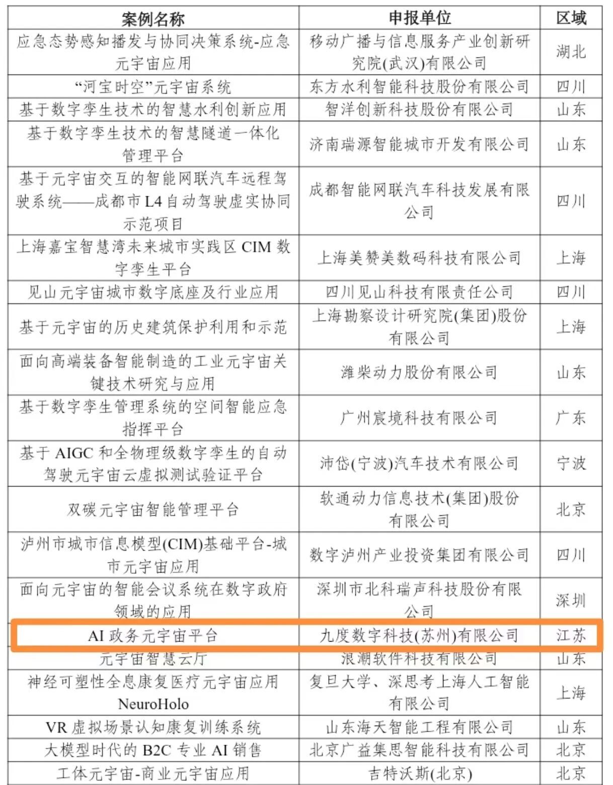 1月4日,国家工业和信息化部公示了“2025年元宇宙典型案例名单”,九度数科自研产品“九度AI政务元宇宙平台”硬核入选,以国家级荣誉拉开2026年发展的序幕。本项目是由国家工业和信息化部、教育部、文化和旅游部、国家广播电视总局四部委联合组织评审,最终发布。